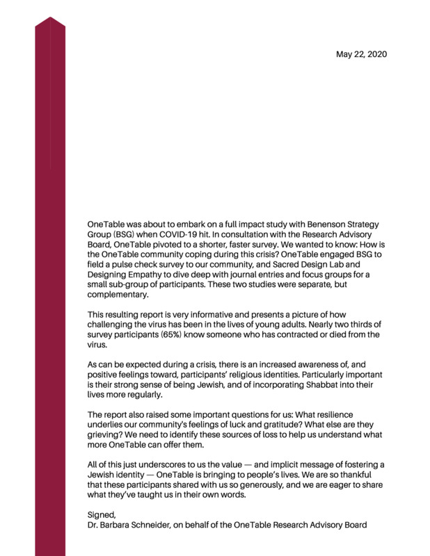 the OneTable community coping during this crisis? OneTable engaged BSG to